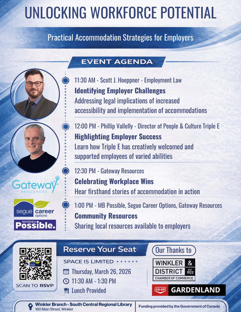 South Central Regional Library 160 Main StreetWinkler, MB Start: Thursday, March 26, 2026 at 11:30 AM End: Thursday, March 26, 2026 at 1:30 PM Time Zone: Central Time Add to my calendar Outlook Calendar Google Calendar Yahoo! Calendar iCal Calendar Remind Me